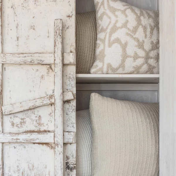 - Handwoven basketweave Cabana Loom back in French gray finish adds organic texture and coastal charm